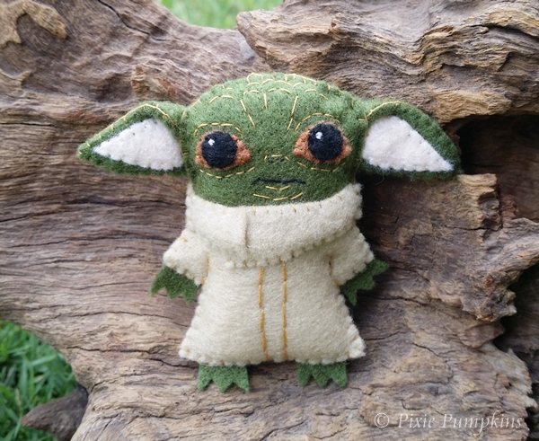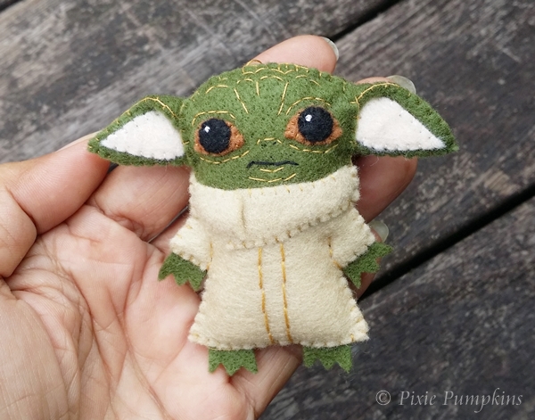 My creation of this adorable Baby Yoda has the cutest expression and smile. This cute baby stuffed plush measures 7.5 cm (3 inches) tall. Created with dozens of tiny stitches and made with great attention to detail. He is hand sewn using felt and stuffed with polyester fiber. The sweet little face is detailed with embroidery thread.