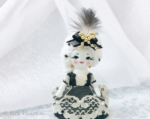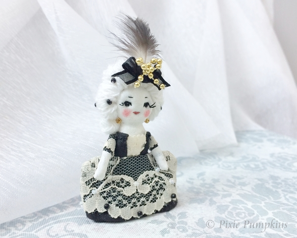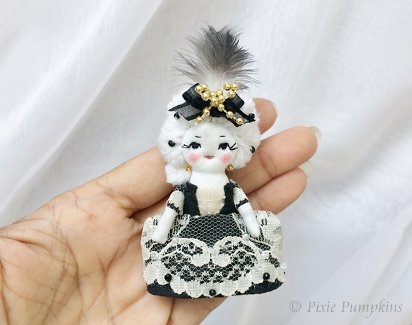 Marie Antoinette Bonbon - 8 cm (3.25 inches) handmade cloth doll with white hair.