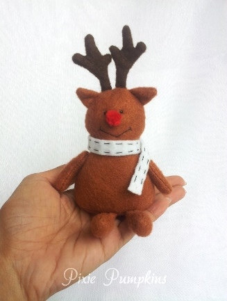 Handmade Felt Reindeer, Christmas Plush Ornament, Felt Stuffed Soft Sculpture - Rudolph The Reindeer