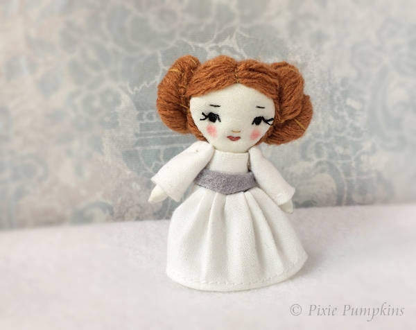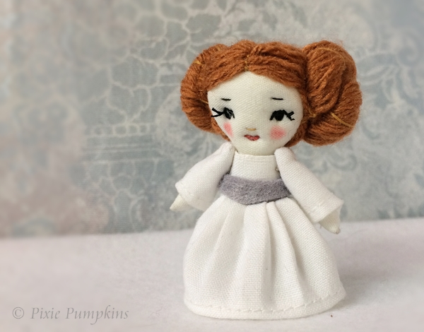 She is a rebel! A plush craft doll inspired by Princess Leia Organa from Star Wars in her costume from Episode IV, A New Hope.