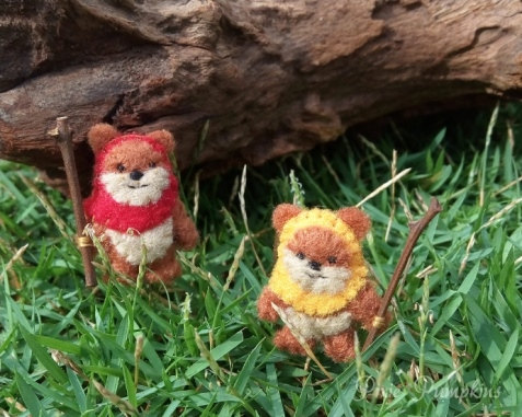 Miniature Felt Ewok, Ewok Miniature Plush, Tiny Felt Ewok, Handmade Ewok Red Hood