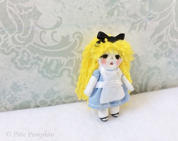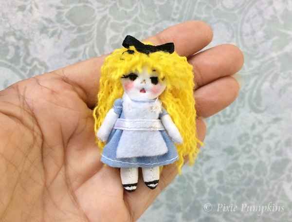 Handmade Cloth Doll Alice In Wonderland - 5.5 cm handmade cloth doll with yellow hair.
