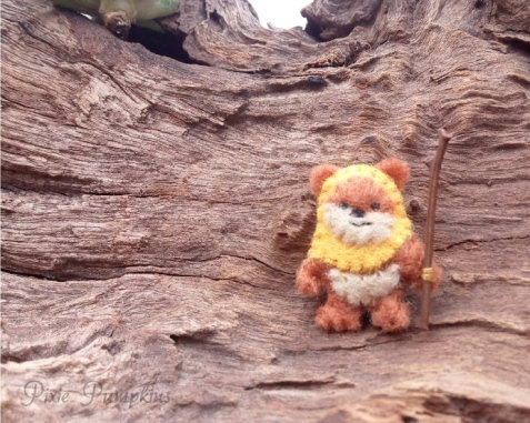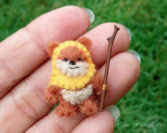My creation of this adorable Ewok has the cutest expression and wears orange felt hood. This cute tiny Ewok stuffed plush measures 2.8 cm tall. Created with dozens of tiny stitches and made with great attention to detail.